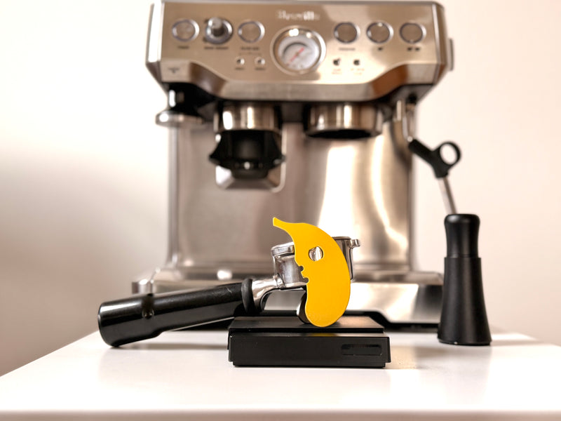 Use the notch in the middle of the Barista Banana to remove your portafilter basket for cleaning or to swap in a different size basket.